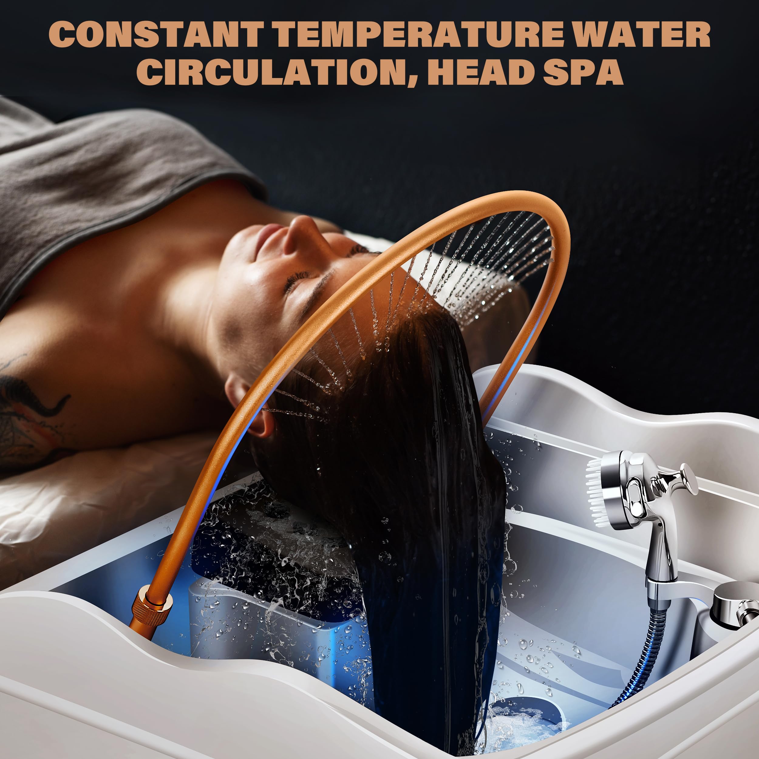 - Large Water Tank: This self-contained head spa system features a generously sized 60L water reservoir,eliminating the need for external plumbing connections.