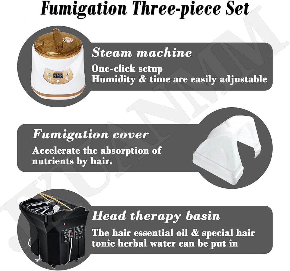 - 60L DUAL HEATING SYSTEM – Maintains optimal water temperature (30°C–45°C) for scalp hydration, steam therapy, or hair treatments, ensuring salon-grade efficiency