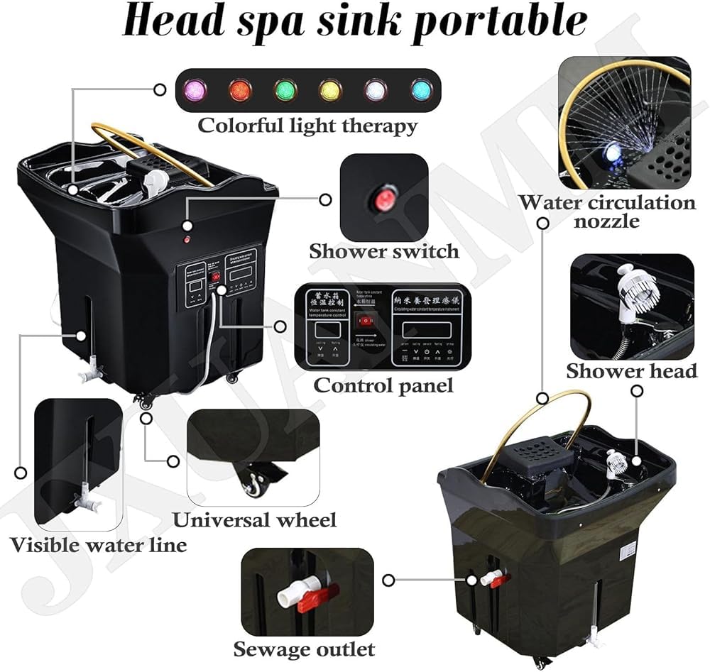 Japanese Professional Head Spa Equipment with 60L Dual Heating & Water Circulation System – Thermostatic Scalp Care Station for Salons, Spas, and Home Use(Size:Set1,Color:Black)