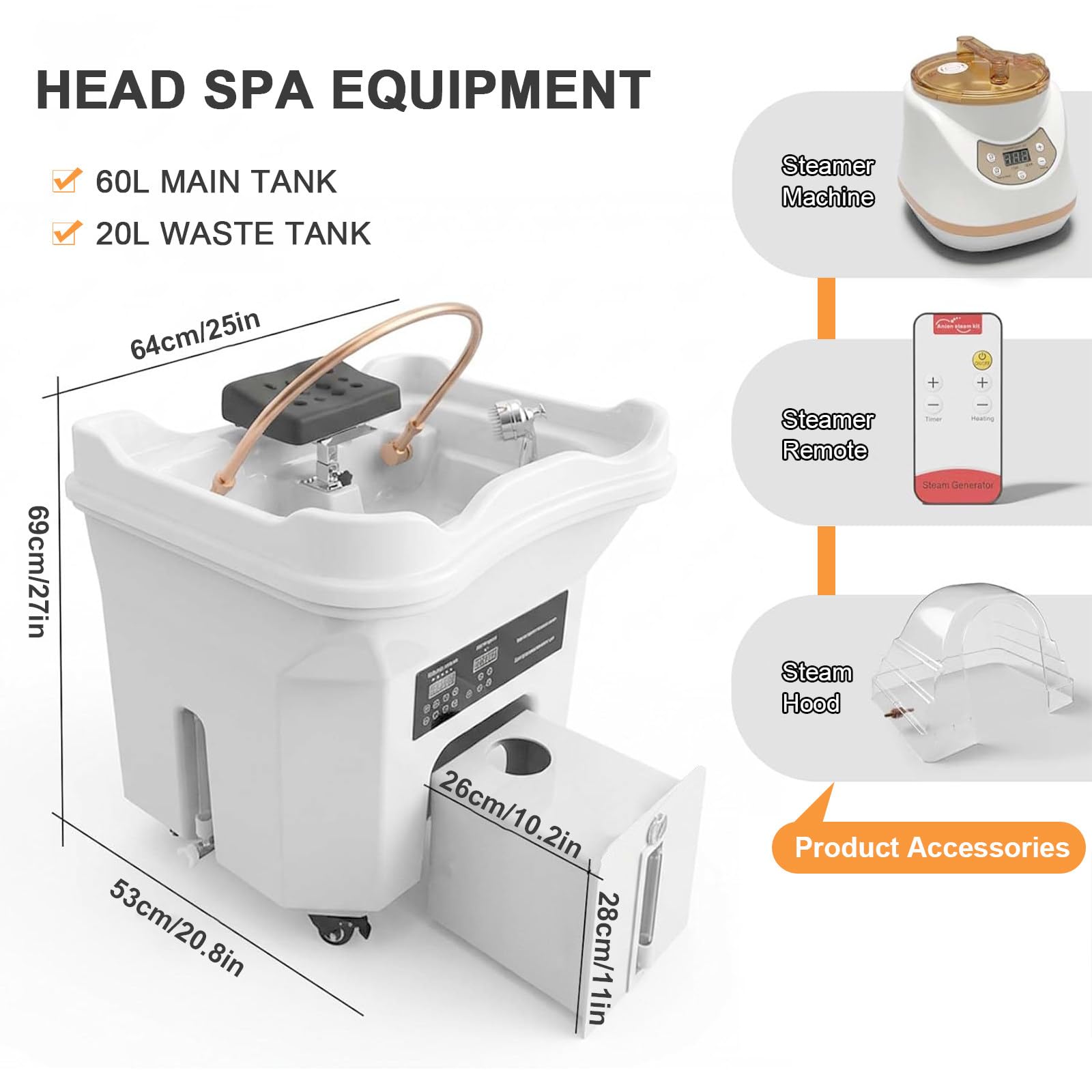 New Head Spa Equipment, with 60L Water Storage Tank +20L Waste Water Tank, Mobile Water Circulation Shampoo Tray for Salons and Spas Set-2