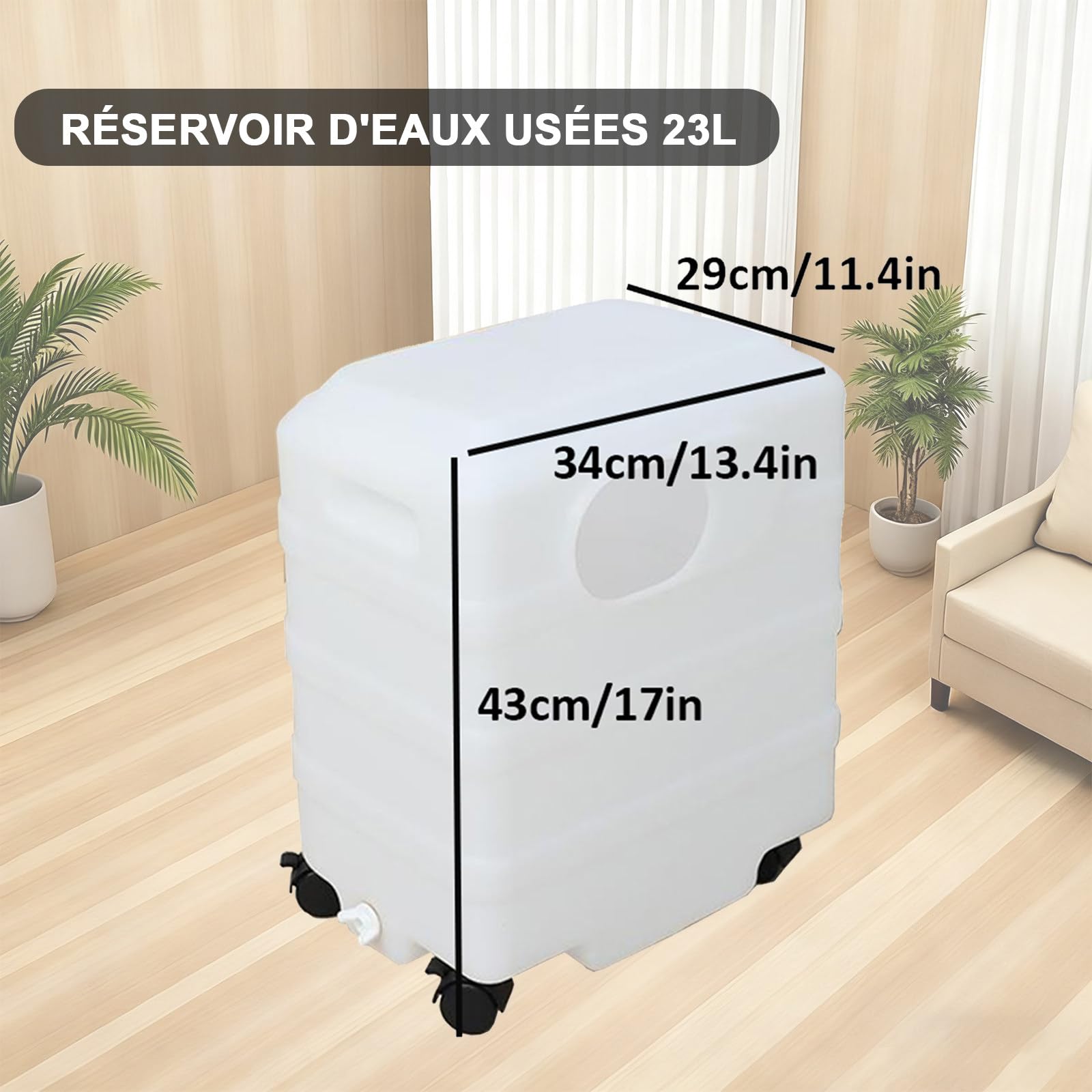 - 【Pratique】Doté d’une grande capacité de 23 litres en matériau PP robuste et hygiénique, il limite les vidanges fréquentes. Sa conception étanche retient efficacement les liquides, évitant les fuites et facilitant le transport jusqu’au point d’évacuation.