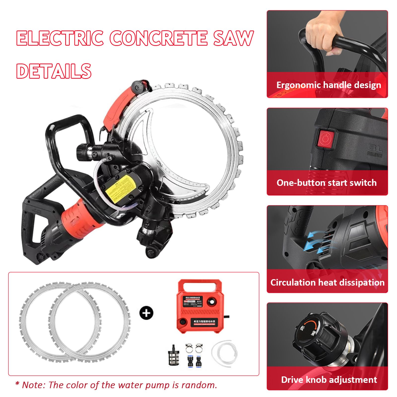 - ◣【Largement applicable】Cette scie à béton électrique convient à la découpe de murs plus profonds et de la plupart des matériaux, tels que les blocs de ciment, le granit, la pierre, le béton, le carrelage, etc. Elle convient également à la construction de routes, de ponts, à la rénovation de maisons anciennes et à la découpe de portes et fenêtres.