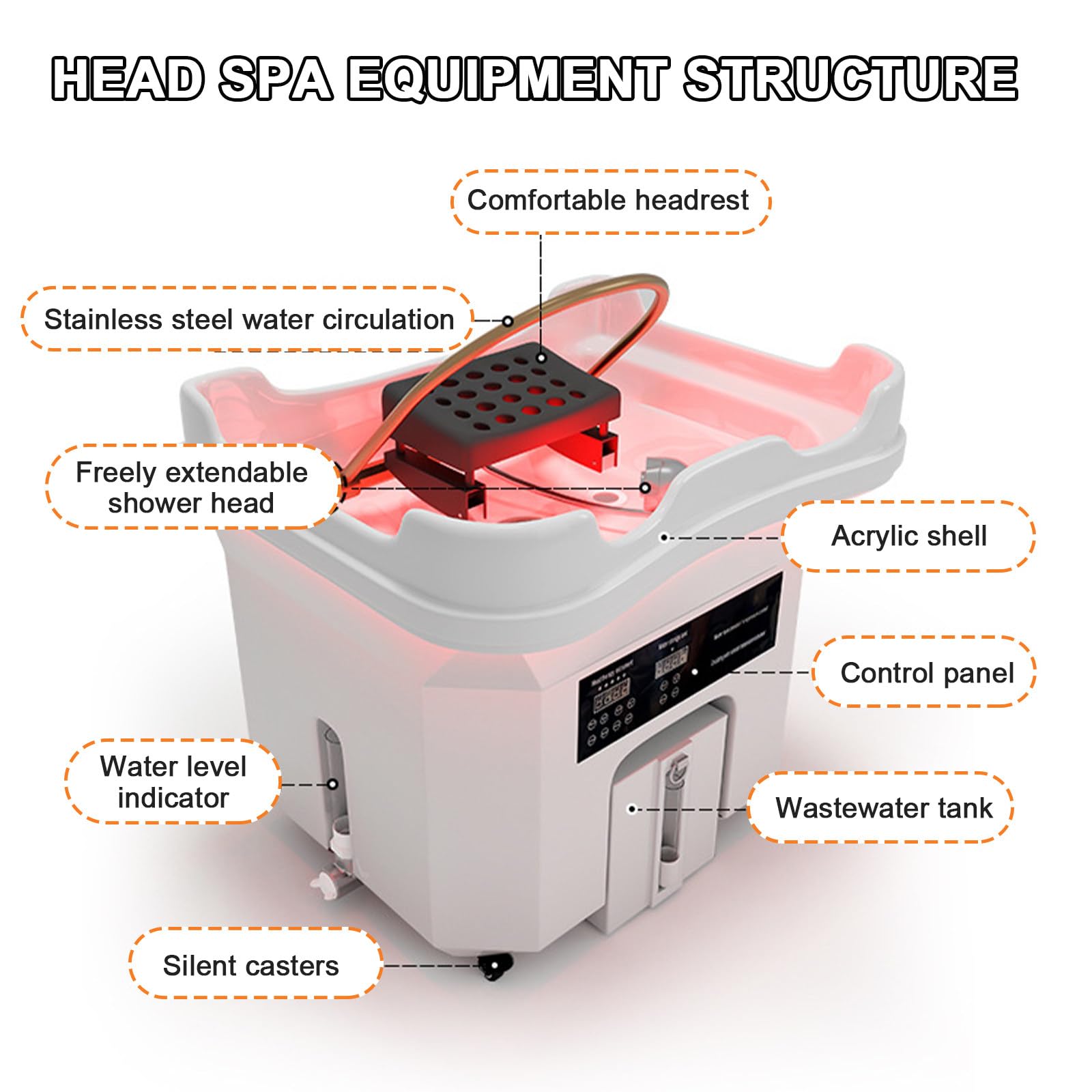 Nouveau Équipement de Spa pour la tête, avec réservoir de Stockage d’eau de 60 L +20L Réservoir d’eaux usées, Bac à Shampoing Mobile à Circulation d’Eau pour Salons et spas Set-1