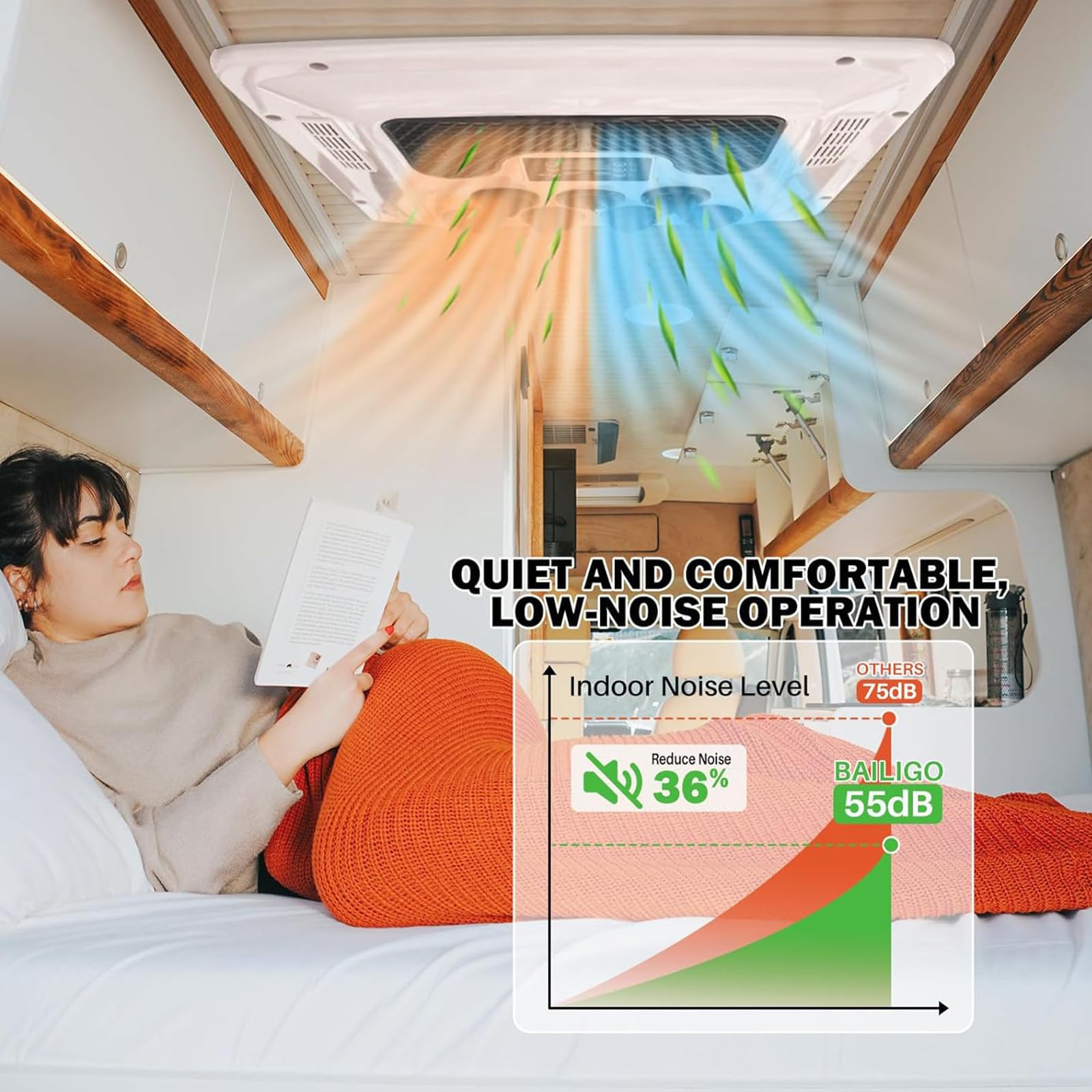 - 【Tranquil Retreat on the Go】Step into a serene space amidst your journey with our RV inverter air conditioner. With its innovative frequency-adjusting technology and low-noise features, whether you’re navigating highways or resting at a quiet campground, enjoy a peaceful haven in the car that’s less than 45 dBs.