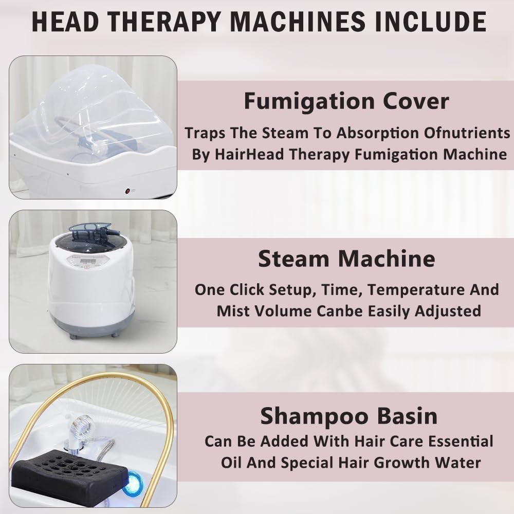 - 【OCCASIONS APPLICABLES】: La machine à spa Head est une combinaison de shampooing, de spa, de vapeur, de luminothérapie, de soins capillaires et de la plupart des chaises de shampooing, des chaises de beauté, des lits de massage et des lits de soins de la tête. Il est très adapté aux salons de beauté, aux salons de massage, aux salons de coiffure, aux spas de santé, etc.