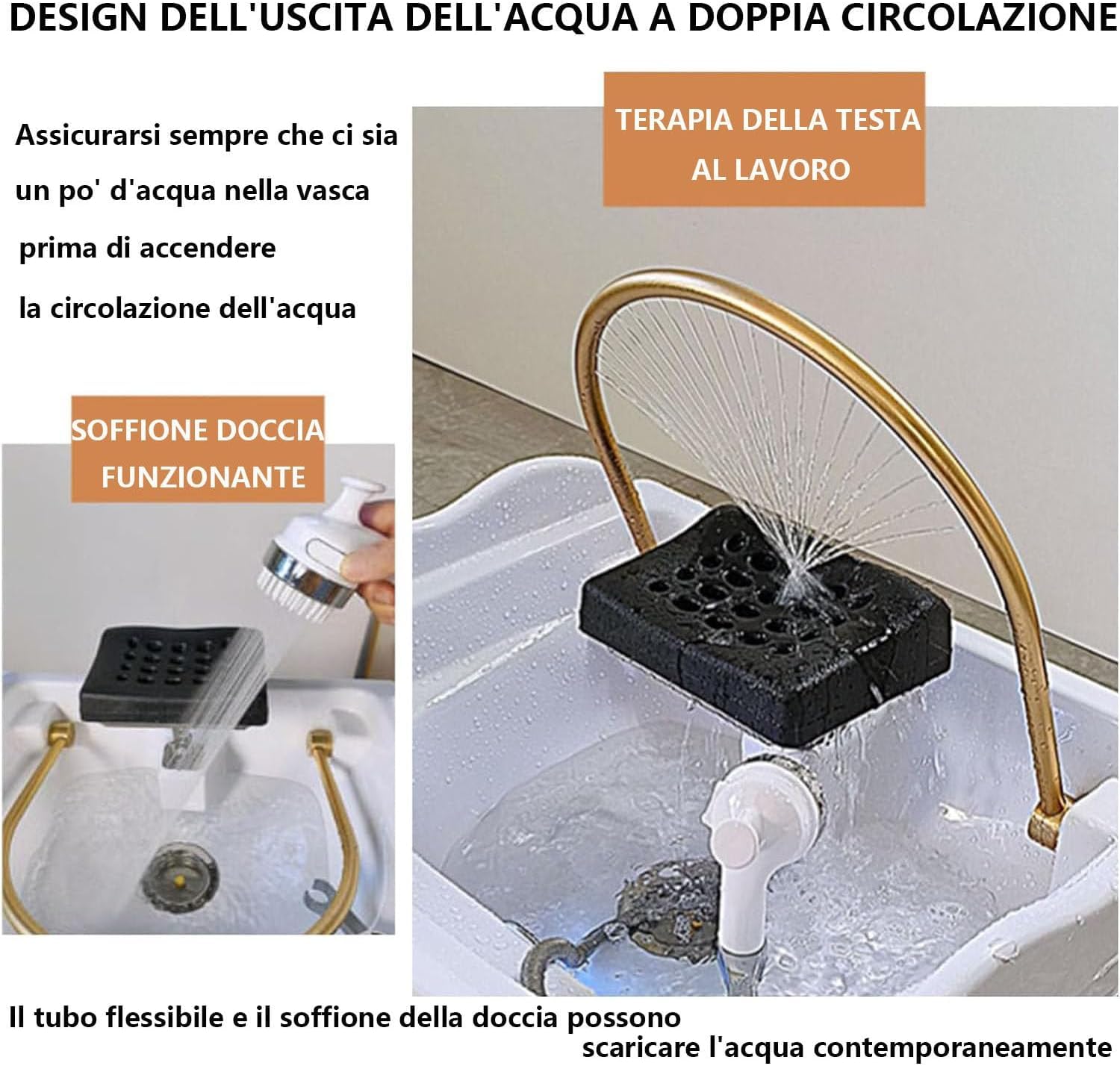 Bassin De Shampoing Head Spa équipement De Spa De Tête Bac a Shampoing Mobile Multifonctionnel à Circulation d’eau à Double Contrôle Commercial avec Réservoir d’eau 60 L,White-Set2
