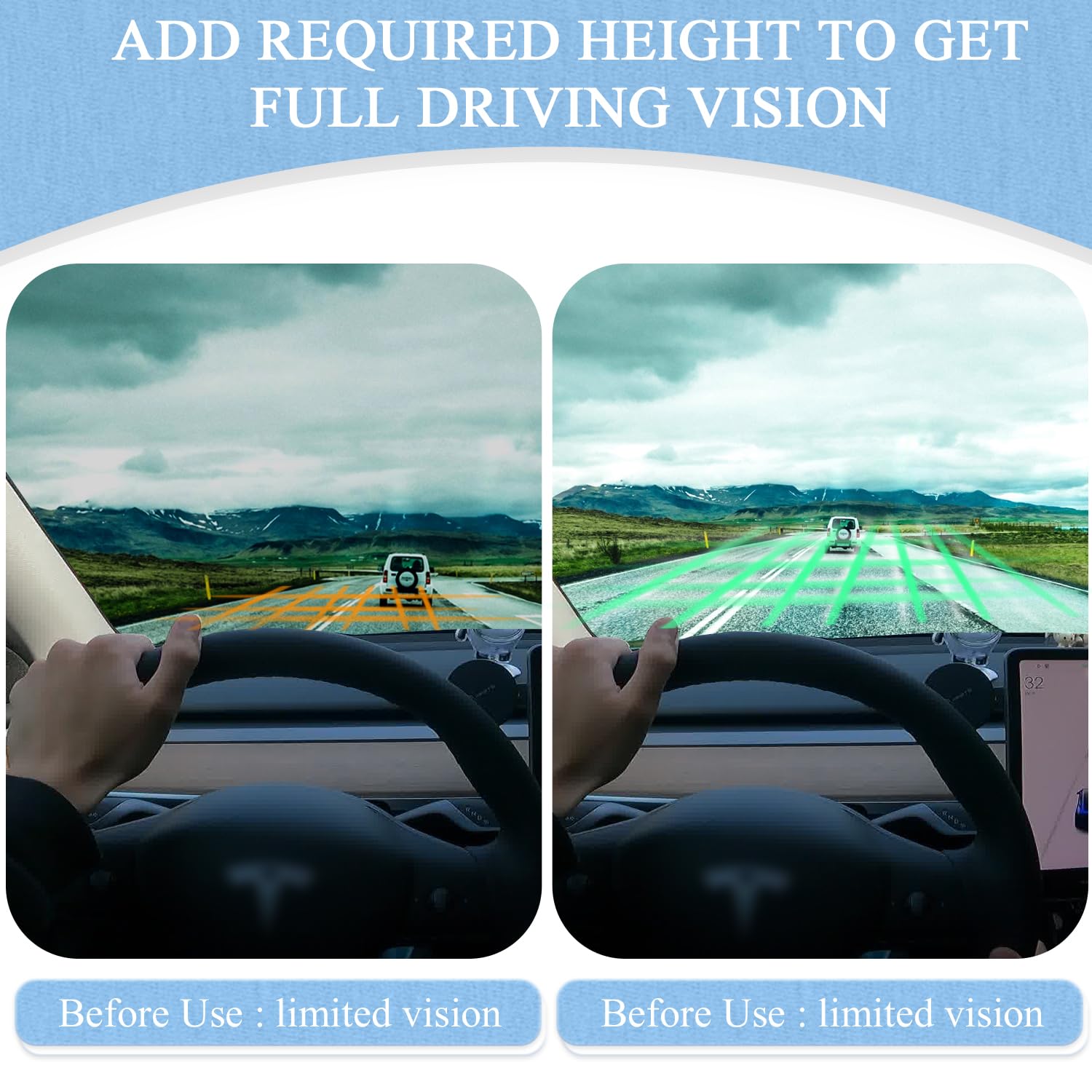 - 👍【Universal Fit with Improved Visibility 】Measuring 16.8″ x 18.3″, our seat cushion for truck driver ensures the vehicle’s universal size. Perfectly matched with your seat, effectively increase the height of the seat, especially the rear seat height, provide perfect waist support, effectively improve the driving vision, ensure safe driving.
