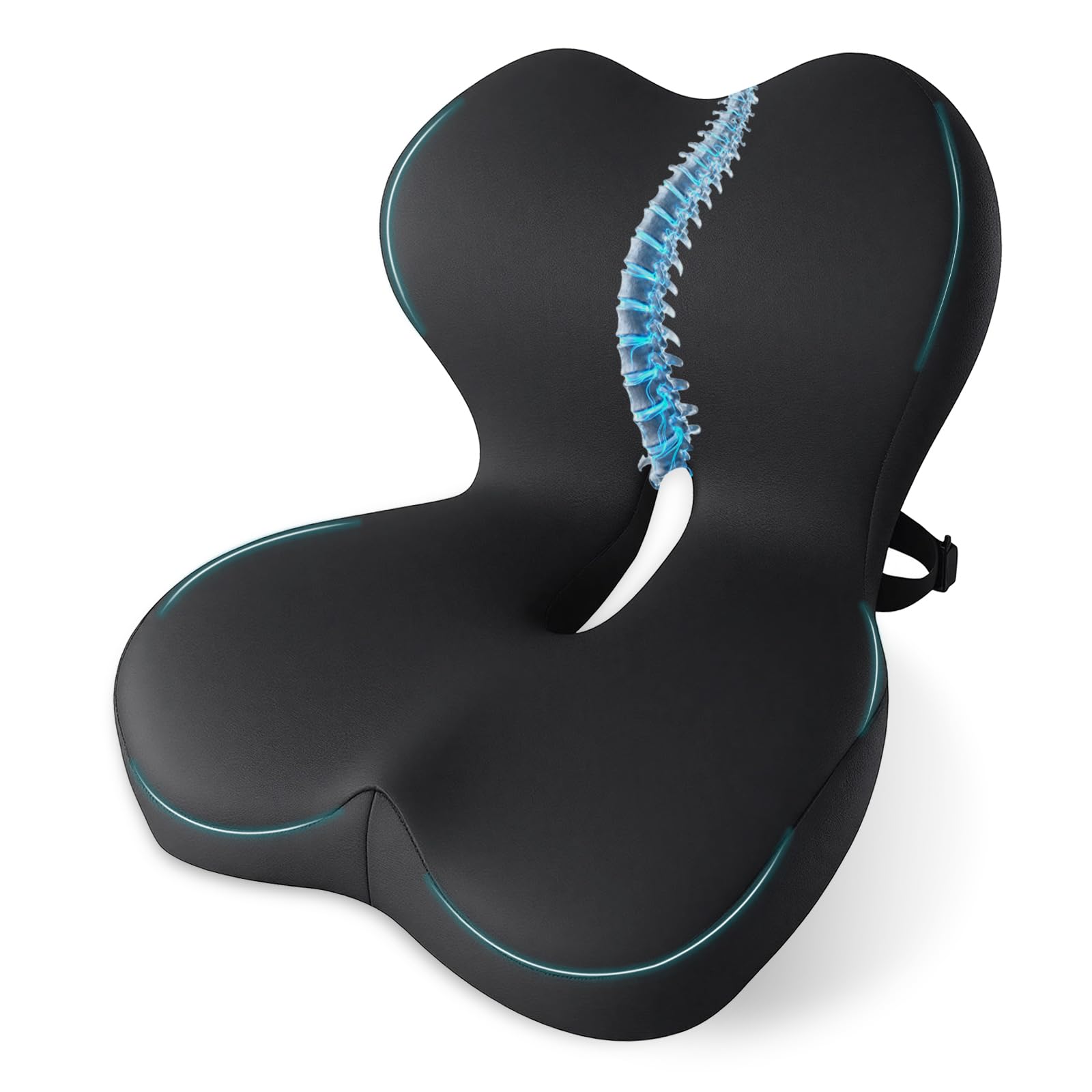 - One Cushion, Double Comfort: Our uniquely molded one-piece design combines lumbar support and seat cushion comfort, offering comprehensive support that alleviates discomfort from prolonged sitting. Say goodbye to hip and lower back pain, including sciatica, and enjoy all-day comfort
