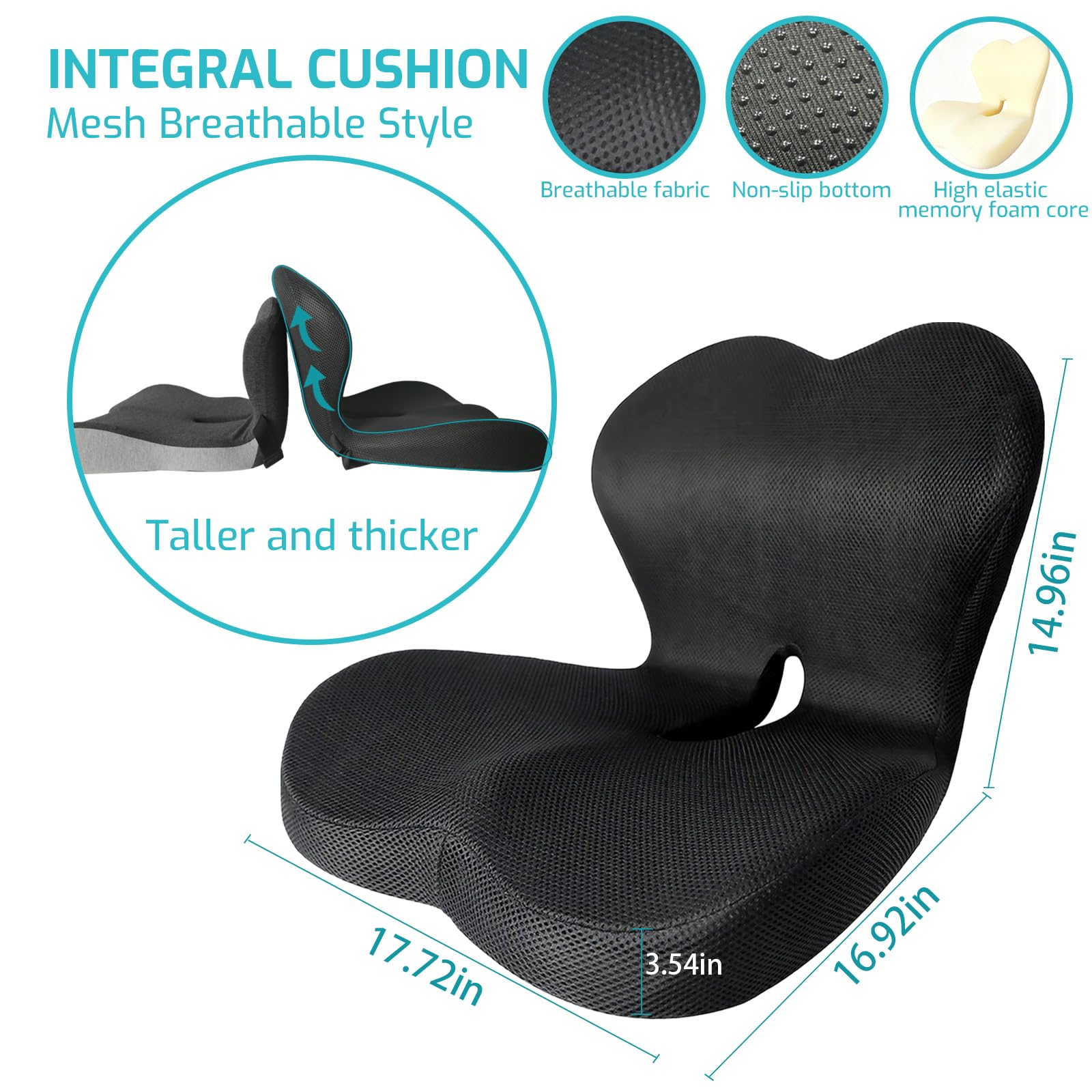 • One Cushion, Double Comfort: Our uniquely molded one-piece design combines lumbar support and seat cushion comfort, offering comprehensive support that alleviates discomfort from prolonged sitting. Say goodbye to hip and lower back pain, including sciatica, and enjoy all-day comfort
