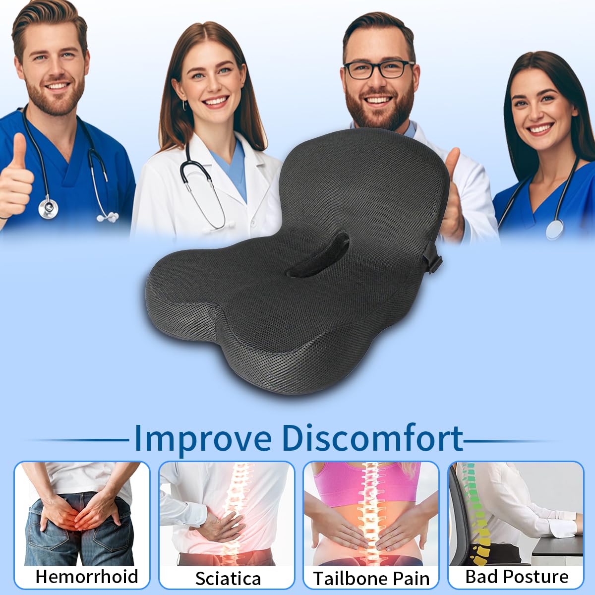 • Long Sitting Tests, Better Support: The cushion features an ergonomic design that has been tested for extended use by a variety of individuals. It’s perfect for relieving pressure on the tailbone and lower back during long drives or extended hours at the office
