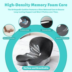 Seat Cushion, Office Chair Seat Cushions for Office Chair with L-Shaped Ergonomic Design, Memory Foam Chair Cushion for Long Sitting Office Worker(Black Gray)