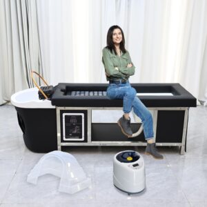 Original price was: $1,999.00.$1,899.00Current price is: $1,899.00.Head Spa Equipment with Thermostatic Waterfall Circulation, 60L Water Storage and 30L Wastewater Tanks, Mobile Shampoo Bowl with Fumigation & LED Therapy for Spa Bed Salon Scalp Care, Black