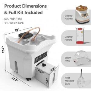 Original price was: $1,299.00.$1,199.00Current price is: $1,199.00.Head Spa Equipment with 60L Water Storage Tank, Warm Steam & Hair Wash Sink for Scalp Care and Relaxation, Roll-Away Base for Stylists